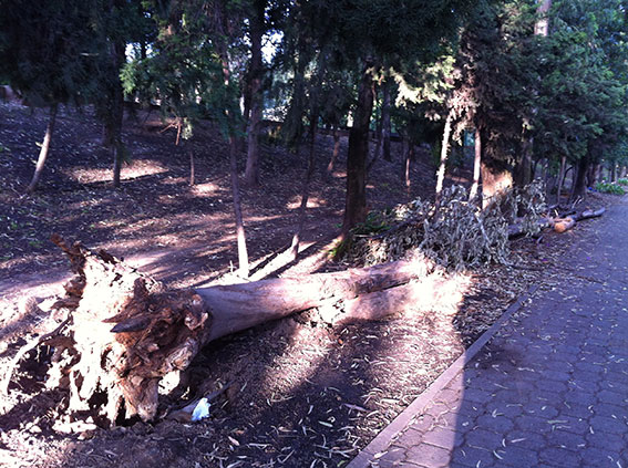 Irina se ausentó, no la hemos vuelto a ver. Ayer se cayó el árbol al que se abrazaba. Cayó con todo y raíz tapando nuestro camino. Hoy los jardineros lo hicieron a un lado. Si fuera un ser humano, diríamos que estaba triste porque ella lo había abandonado. Nos detuvimos por unos minutos a observarlo detenidamente. Dicen que las plantas, los árboles, reaccionan a las caricias, a la música. Puede ser, conforman lo que llamamos el Reino Vegetal. ¿Son sensibles? Pero de aceptar eso a creer que reaccionaba ante las caricias de Irina y luego ante su abandono, el trecho es mucho. No hay manera de comprobarlo.