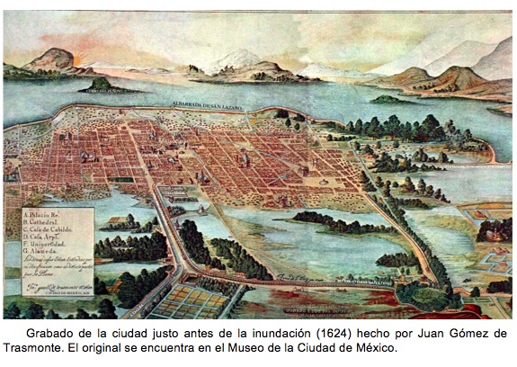Tenochtitlan fue objeto de varias inundaciones, pero la de 1629 fue la más grave de que se tenga memoria en toda la historia de la Ciudad de México Cobró 30 mil vidas entre los indios y desalojó a cerca de 20 mil familias españolas. Llovió durante 36 horas ininterrumpidas. Los daños alcanzaron tales dimensiones que el entonces rey de España, Felipe IV, ordenó refundar la capital de la Nueva España en tierra firme, en las lomas que se formaban entre Tacuba y Tacubaya. Pero las autoridades virreinales se negaron con un argumento muy sólido: era diez veces más caro trasladar y reconstruir la ciudad que desecar el lago. Esto selló nuestro destino.
